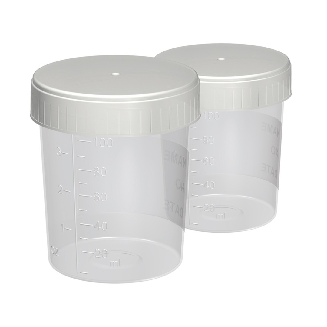 Hızlı Görünüm Polipropilen İdrar Numune Kabı Steril 100 ml Yazılabilir Özel Alan 100 ml hacimli Özel Dizayn Üç çevrimli özel kapak Steril